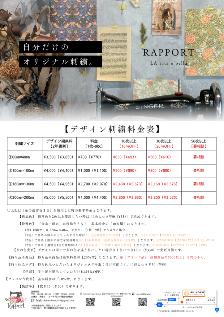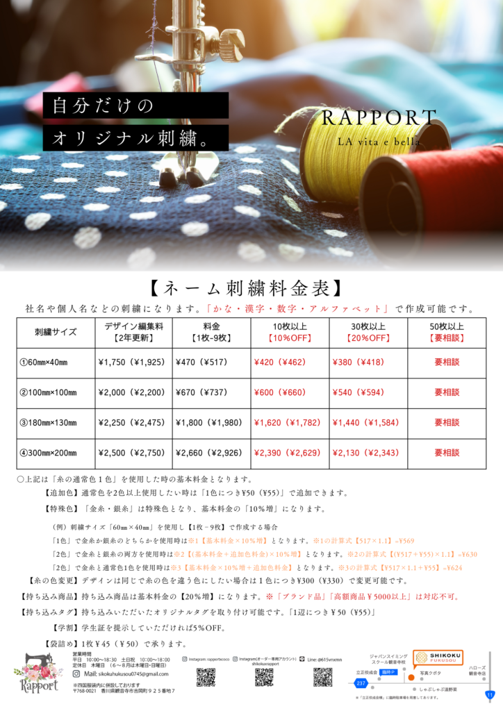 工業用のミシンを使用して、高いデザイン力と多彩な刺繍を実現。繊細な生地や薄地にも対応でき、あらゆる生地に刺繍することが可能。