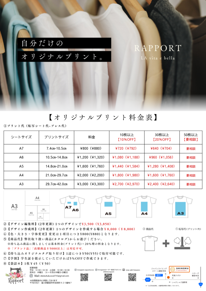 四国服装が得意とするカッティングプリントなら、小ロットでもお手頃価格で作製できます。